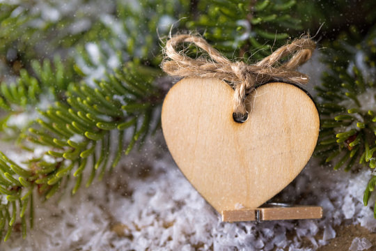 Christmas heart wooden shape with fir tree