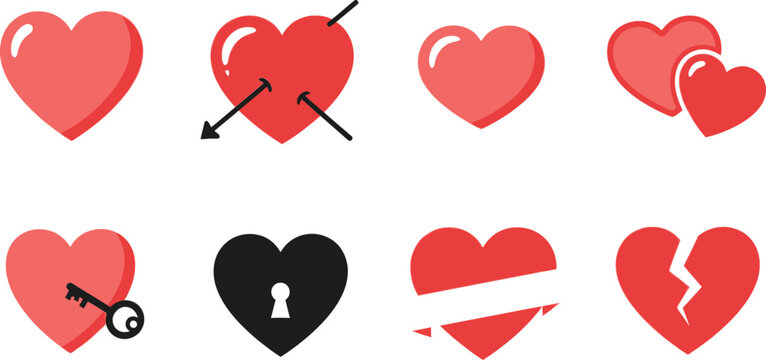 Heart icon set. Collection of love, romance, and heartbreak symbols. Vector silhouette glyphs for Valentine's Day