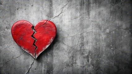 Distressed cracked red heart shape over black background, symbolizing broken love, shattered emotions, loss, pain, and heartbreak concept