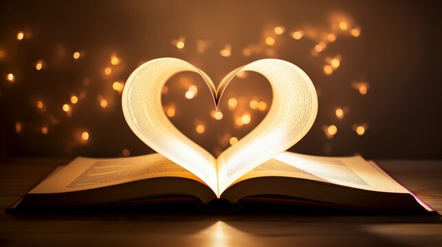 Open book with heart shaped pages, embodying the fusion of literature and love. A symbol that speaks to the profound connection between words and emotions.