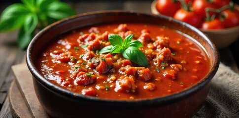 Rich, vibrant beef tomato sauce simmering in a rustic pot, ready to be served Perfect for pasta, pizza, or as a hearty base for other dishes , tomatoes, dinner