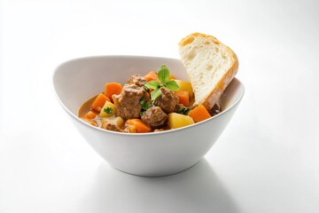 Delicious curry dish served in a bowl, featuring tender meat, vegetables, and a rich, flavorful sauce garnished with herbs.