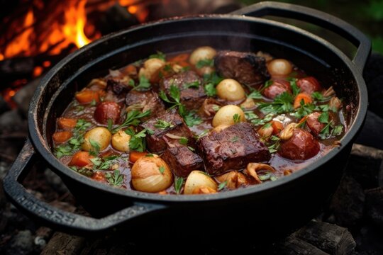 Black cast iron pot with lid, ideal for rustic kitchen decor and hearty winter meals