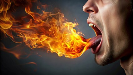 Tongue on fire, person experiencing intense spicy heat sensation , spicy, burning, hot, mouth, sensation, pain, discomfort