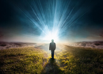way path to heaven with light glow from the eternal horizon, concept of adventure to unknown place