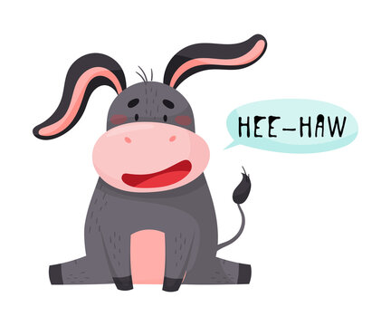 Donkey with Open Mouth Making Hee-haw Sound Isolated on White Background Vector Illustration