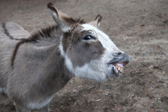 Humorous Cartoon Of A Braying Donkey Wearing A Large, Comical Paperclip Around Its Neck
