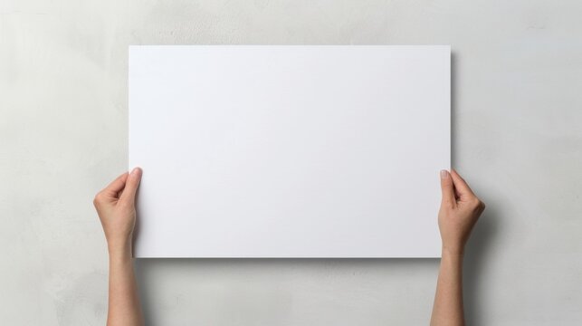 Blank cards held in hand against a gray backdrop