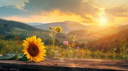 Sunset over a sunflower field