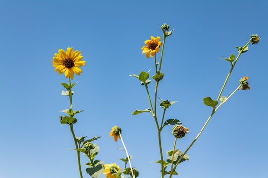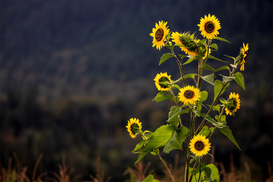 Sunflower bush (Helianthus annuus) early morning late summer