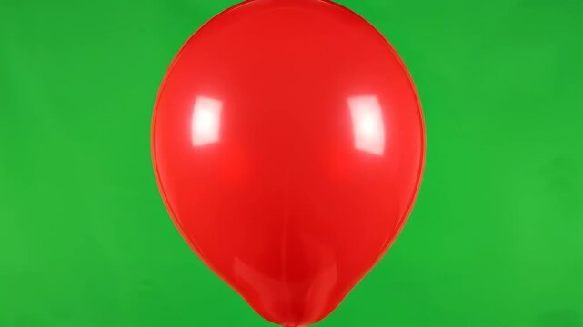 Red Balloon Floating on Green Screen Background for Chroma Keying.