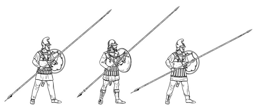 Pontic phalangite in battle. Ancient warriors. Historical drawing.