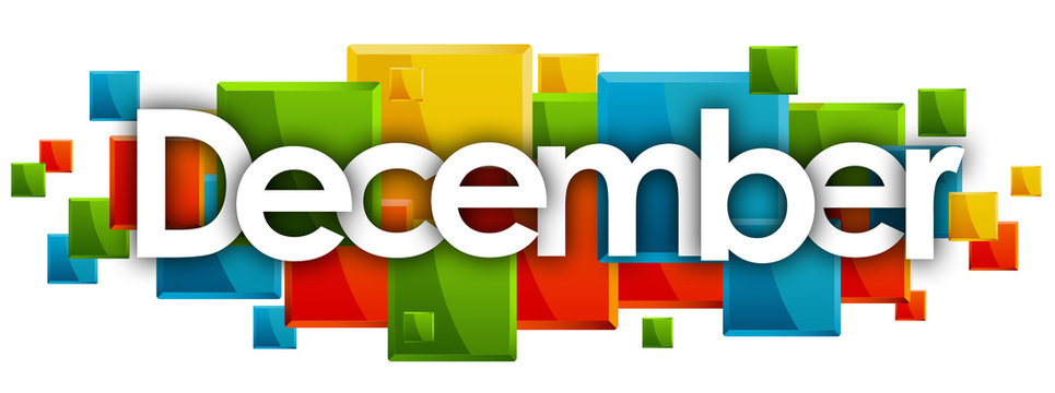 A photo of the text "Hello December" made from Christmas decorations, surrounded by presents and candy canes on a white background with pine branches and red ornaments. The word is in wooden Scrabble