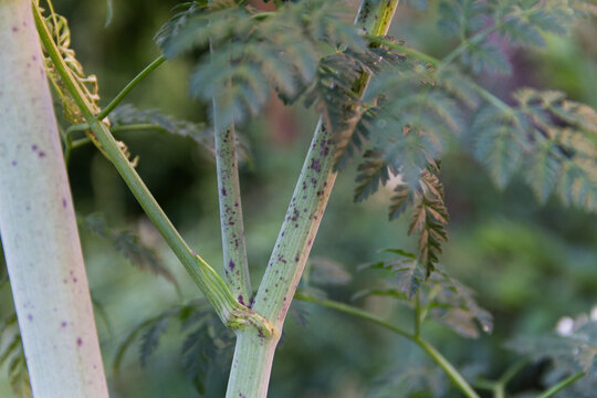 Poison hemlock leaf Conium maculatum up close macro carrot family apiaceae