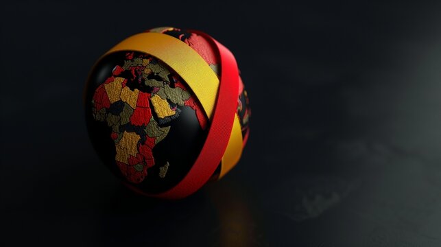 The concept of 'World Hepatitis Day' 28th July. World globe and red yellow ribbon with black background.