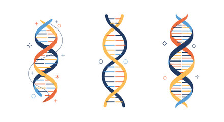 Colorful dna double helix structures illustrating genetics molecular biology biochemistry health science and research concepts