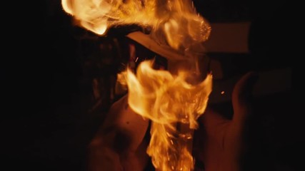 Male hands open the burning book