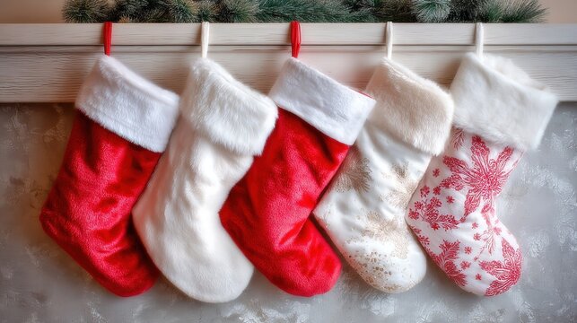 Flat-lay Christmas stock photo: vivid red fur stocking isolated on white, copy-space for e-commerce hero, banner or greeting card, ultra-sharp realistic capture