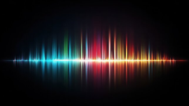 Spectacular Spectrum of Sound: A vibrant and dynamic sound wave pulsates with an array of brilliant colors against a deep black backdrop.