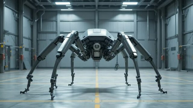 Advanced Hexapod Robot in a Modern Industrial Setting for Futuristic Applications