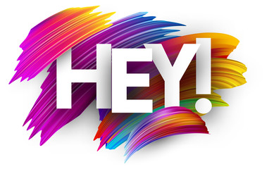 Hey card with colorful brush strokes.