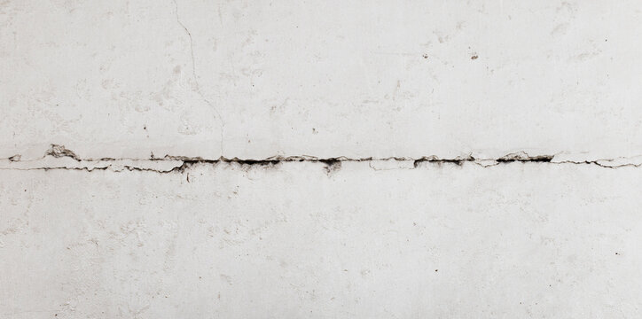 Texture white concrete wall has cracks