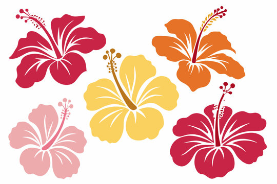 set of hibiscus flower silhouette vector illustration