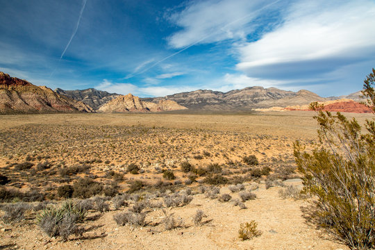 Panoramic view of High Desert California mountains near Mojave Desert heading towards L. A.