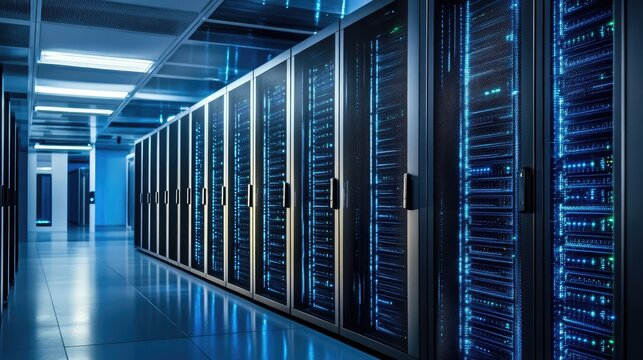 High performance server racks operating in secure data center environment essential for digital infrastructure.