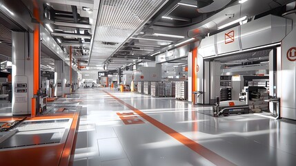 A highly efficient and technologically advanced distribution center with automated conveyor belts and neatly stacked pallets