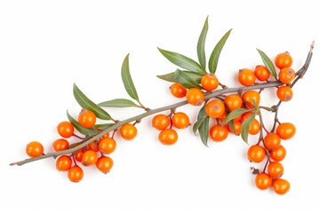 Branch of sea buckthorn berries, clipping paths