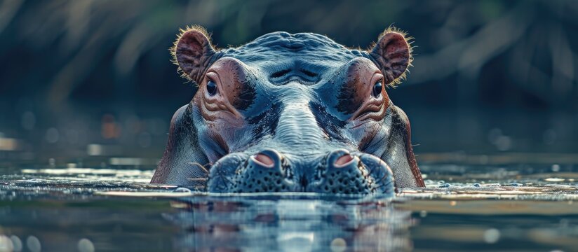 Common hippopotamus in the water. The common hippopotamus (Hippopotamus amphibius), or hippo. Africa