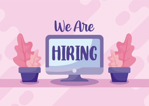 Join our team recruitment design poster. Modern brush lettering with colorful background. We are hiring banner or poster template. Trendy vector illustration.