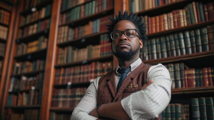 Academic professor in the library holding a book