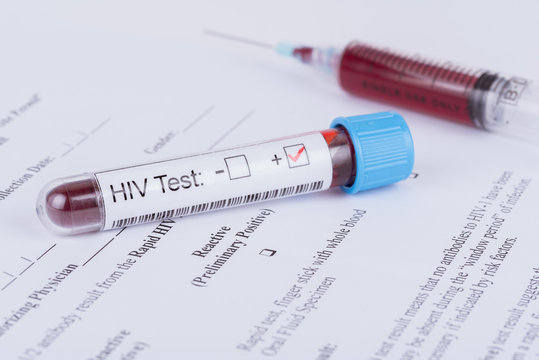 Close-up of positive blood sample from VIH typo 1 and 2.