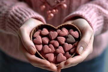 chocolate candies for valentine's day in female hands