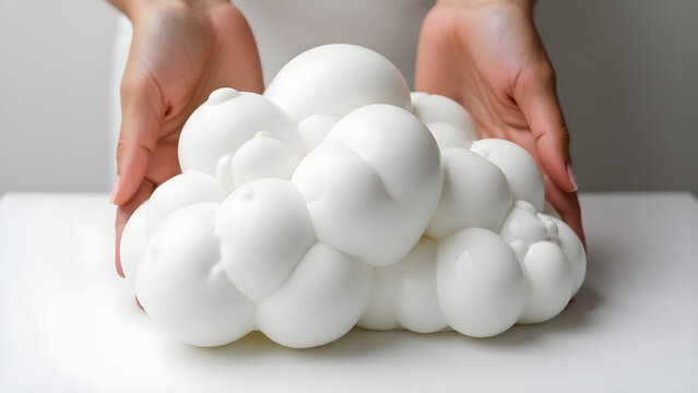 Human hands holding a white egg