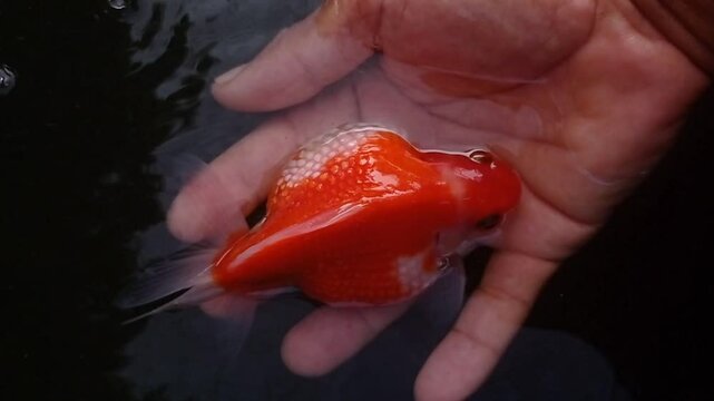 hand holding a red fish