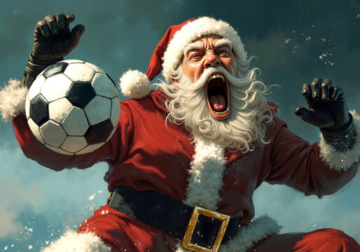 A zombie holding a soccer ball in his hand, on a dark and spooky Halloween background