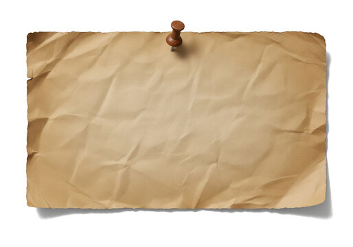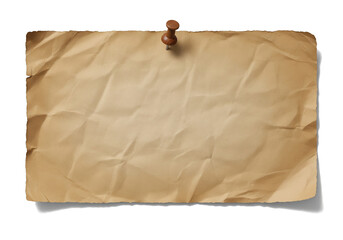 Old paper sheet pinned to white surface, aged and textured, ready for message or note isolated on transparent background