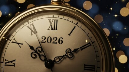 Close-up Vintage Pocket Watch Striking the Year 2026 Celebration