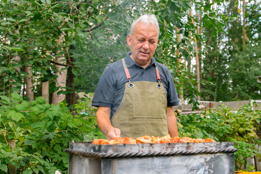 An open-air barbecue grill ready for a festive summer holiday cookout.