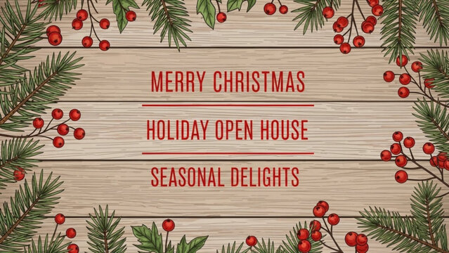 Festive christmas party invitation with red berries
