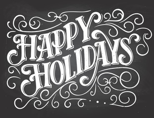 Happy holidays. Vintage hand lettering on blackboard background with chalk. Christmas typography