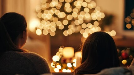 Cozy Living Room During Christmas with Relaxed Couple Watching TV and Holding Remote