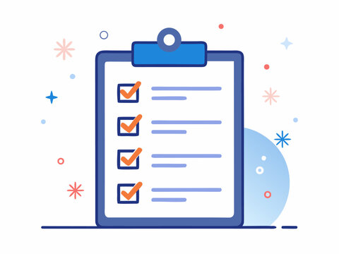 Modern flat style checklist design with clipboard, check marks, colorful presents and holiday theme