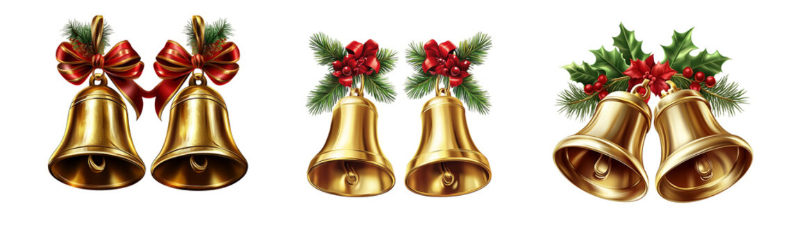 Ring bells christmas themed set Isolated on transparent background, png.