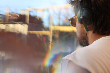Anonymous DJ playing at summer electronic tropical party in Brazil