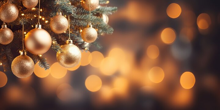 Festive holiday greeting with ornaments on sparkling snow