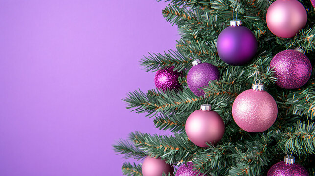 Vibrant Christmas tree decorated pink purple ornament bold purple backdrop striking contemporary holiday design festive celebration banner advertising campaign promotion marketing luxury vibe spirit